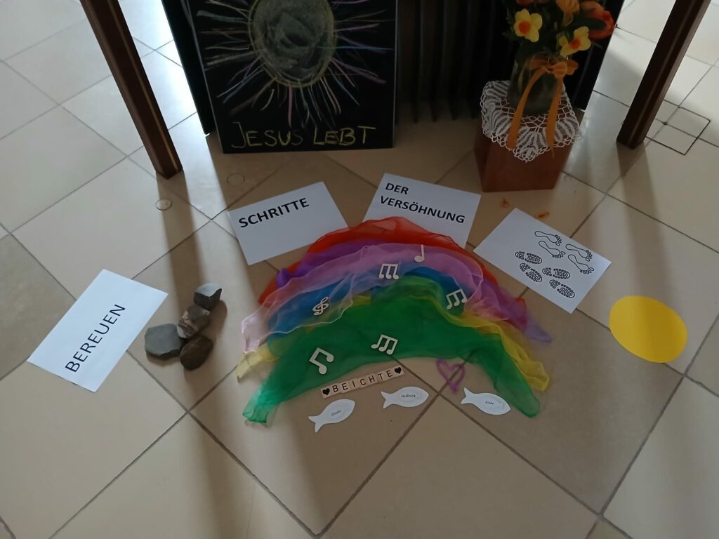 Auch ein gemeinsamer Kirchenbesuch bot die Möglichkeit, den Kirchenraum zu entdecken und besser kennenzulernen. Die Erstbeichte wurde in einem würdevollen Rahmen gefeiert und fand ihren Abschluss in einem fröhlichen Versöhnungsfest.